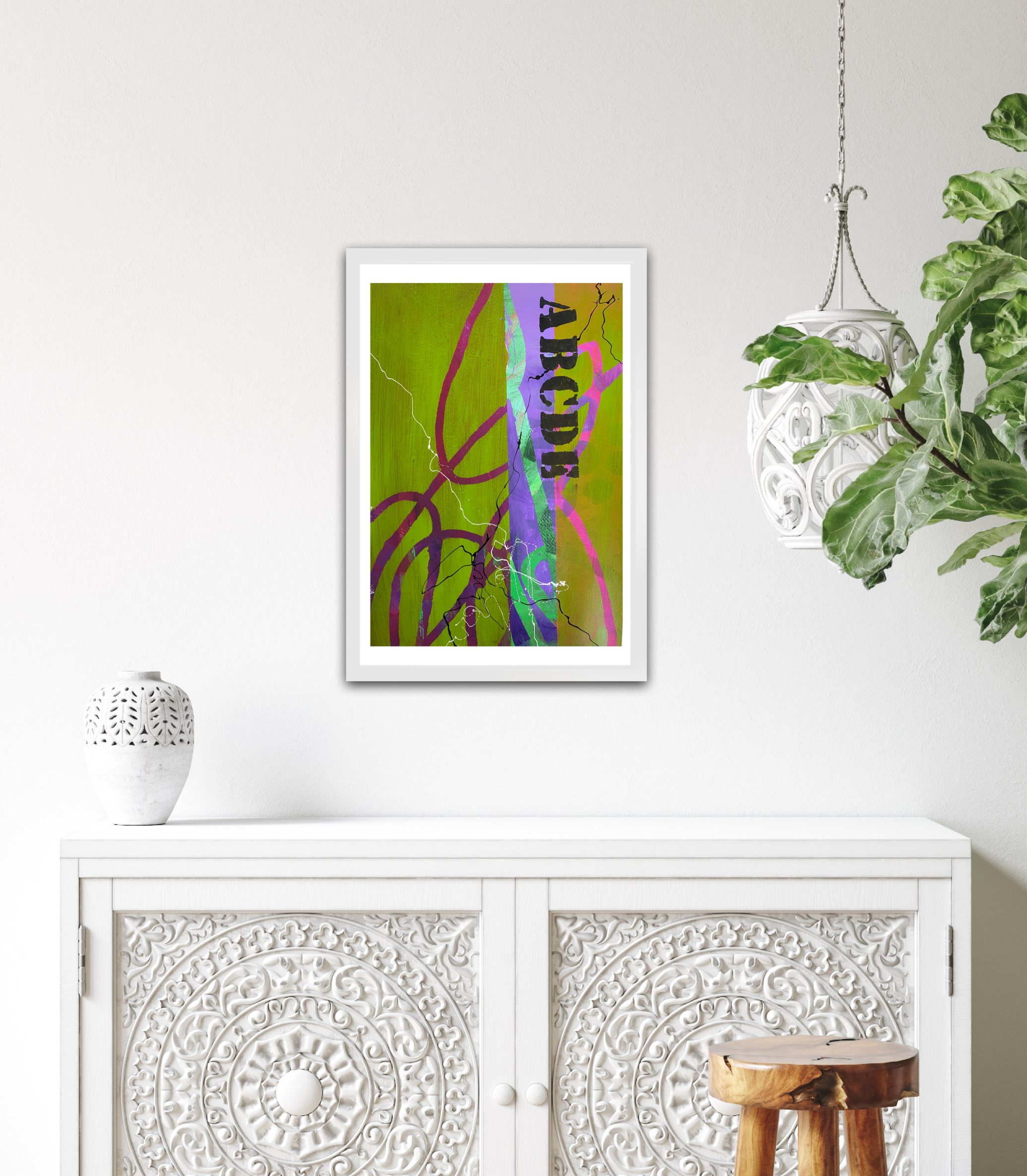 This picture was painted with acrylic paints on strong watercolor paper 220g / m2.It is approximately 30cm x 42cm in size.The picture is protected with UV varnish and signed on the back.„Stripes and Strings“ ist eine neue Serie von 24 Bildern, die sich ganz dem Thema Linie widmet.